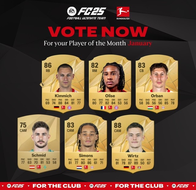 2月5日訊 德甲官方公布了一月聯(lián)賽最佳球員候選名單,其中,維爾茨、基米希、哈維-西蒙斯、奧利賽等人入選。