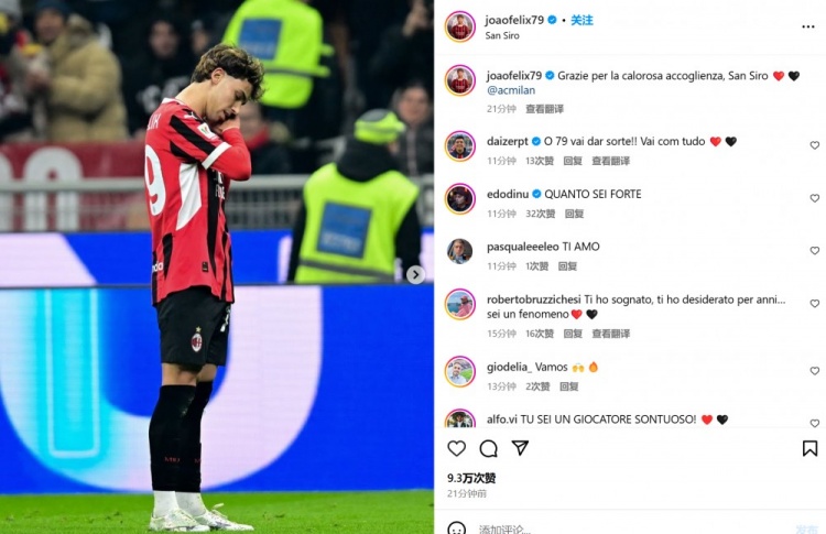 2月6日訊 米蘭在本輪意大利杯3-1擊敗羅馬,菲利克斯首秀替補(bǔ)建功。第71分鐘,米蘭兩位冬窗新援替補(bǔ)連線,希門尼斯直塞,菲利克斯單刀破門。他也在賽后通過(guò)社媒曬出自己進(jìn)球后的慶祝照,并配文:“謝謝你們的熱烈歡迎,圣西羅??????@AC米蘭俱樂(lè)部”。 本文標(biāo)簽: 足球 意甲 AC米蘭 羅馬