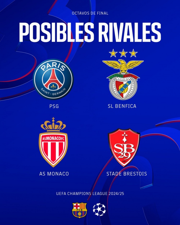 1月30日訊 歐冠淘汰賽,巴薩的潛在對手是巴黎、本菲卡、摩納哥和布雷斯特,巴薩本賽季與這4支球隊之中的3支都已經有過交手。巴薩與歐冠16強潛在對手本賽季的交手成績:歐冠聯賽階段:巴薩客場1-2摩納哥歐冠聯賽階段:巴薩主場3-0布雷斯特歐冠聯賽階段:巴薩客場5-4本菲卡 本文標簽: 足球 西甲 巴塞羅那 法甲 巴黎圣日耳曼 布雷斯特 摩納哥 五洲 葡超 歐冠