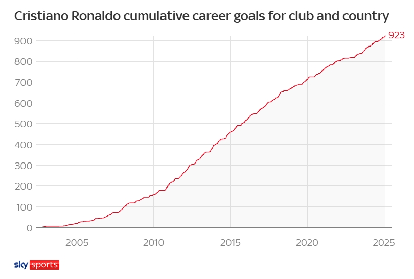 天空體育按照C羅目前的進(jìn)球效率和年齡計(jì)算,得出結(jié)論:C羅有望在41歲時(shí)達(dá)成職業(yè)生涯1000球的成就!