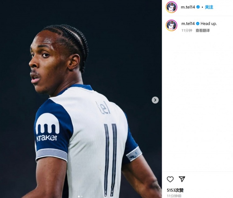 他也在賽后通過(guò)社媒曬出自己的比賽照紀(jì)念熱刺首秀,并鼓勵(lì)全隊(duì):“抬起頭來(lái)?!?/p>