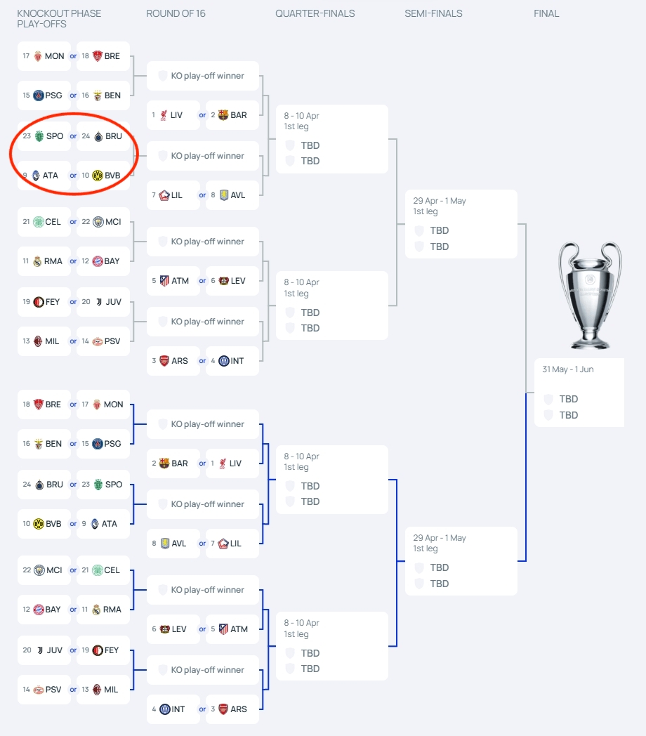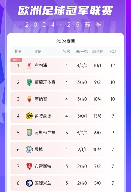 葡萄牙體育本賽季歐冠開局3勝1平,一度高局積分榜第2位,僅次于利物浦。但是前主帥阿莫林被曼聯(lián)挖走之后,球隊在歐冠3連敗排名瘋狂下滑。最終后4輪驚險拿下1分的葡體,僅排名附加區(qū)倒數(shù)第2,他們將在附加賽對陣亞特蘭大或是多特蒙德。