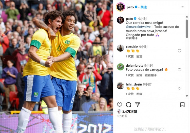 2月7日訊 巴西傳奇球星馬塞洛宣布退役,其昔日巴西國(guó)家隊(duì)隊(duì)友帕托也在社媒曬出合影為其送上祝福。帕托在社媒配文寫(xiě)道:“多么精彩的職業(yè)生涯!祝你人生新的篇章一切順利,感謝你所做的一切!” 本文標(biāo)簽: 足球 西甲 五洲 巴甲