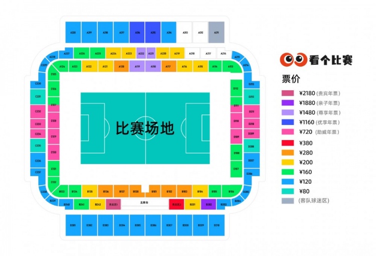 2.C、D區(qū)二層助威年票區(qū)域觀賽時將會受旗陣等因素影響視線,請慎重確認后購買。