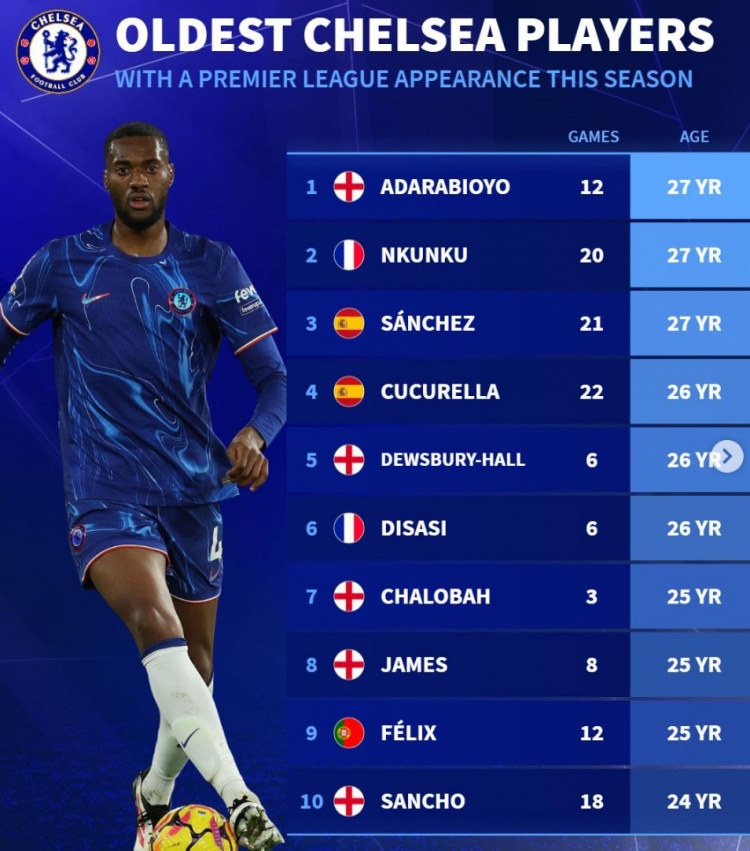 2月9日訊 《轉會市場》統(tǒng)計了本賽季切爾西球員英超出場年齡情況,最高年齡僅為27歲。德轉列本賽季切爾西英超出場球員年齡最高榜:27歲,阿達拉比奧尤、恩昆庫、羅伯特-桑切斯26歲,庫庫雷利亞、迪尤斯伯里-霍爾、迪薩西25歲,查洛巴、里斯-詹姆斯、菲利克斯24歲,桑喬… 本文標簽: 足球 英超 切爾西