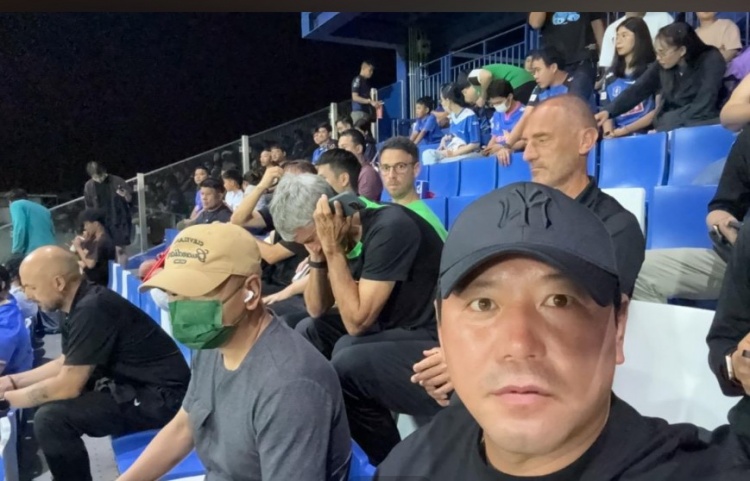 2月10日訊 北京國(guó)安目前正在泰國(guó)進(jìn)行冬訓(xùn),今天國(guó)安領(lǐng)隊(duì)隋東亮?xí)癯隽饲蜿?duì)教練組前往泰超現(xiàn)場(chǎng)觀賽的照片。