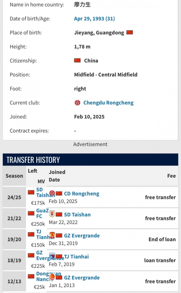2月10日訊 根據(jù)德國轉會市場網(wǎng)站顯示,廖力生已經(jīng)加盟成都蓉城。在德轉廖力生的個人頁面中,他已經(jīng)于2月10日加盟成都蓉城,但合同年限并未披露。本次廖力生屬于自由身轉會,因此成都蓉城無需支付轉會費用。31歲的廖力生,2022年以自由身球員身份加盟泰山,共為泰山隊出場77次,打入7球并有7助攻。 本文標簽: 足球 中超 中國足球 成都蓉城