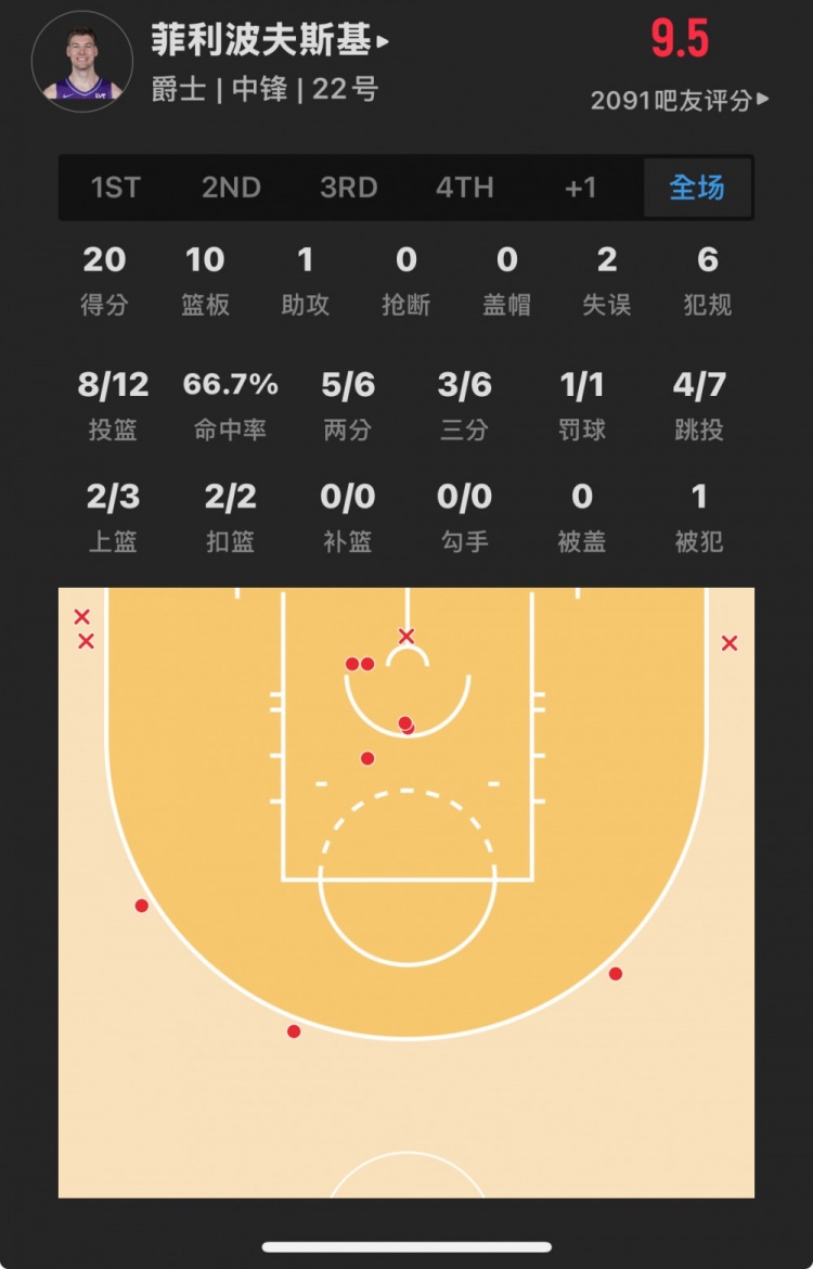 爵士32號(hào)秀 凱爾-菲利波夫斯基 登場(chǎng)37.0分鐘