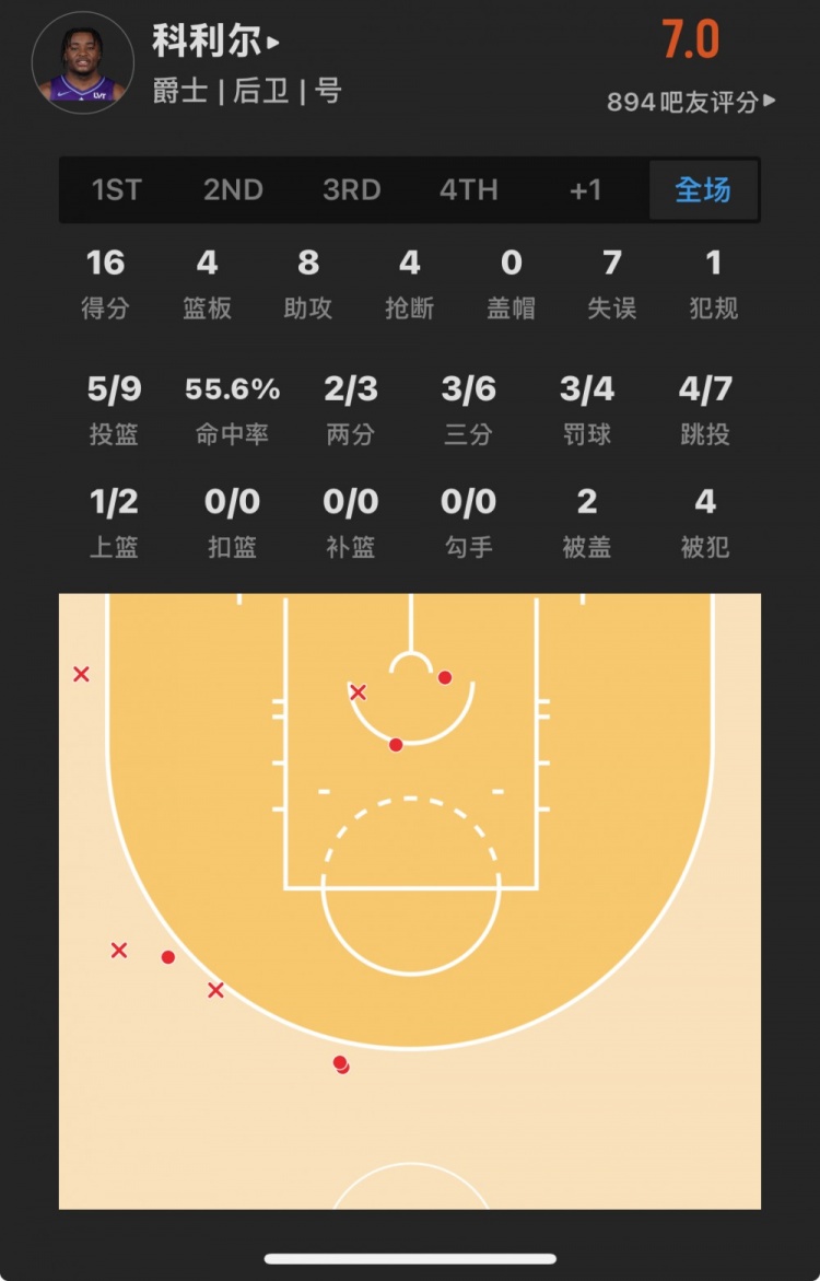 爵士29號(hào)秀 以賽亞-科利爾 登場(chǎng)31.5分鐘
