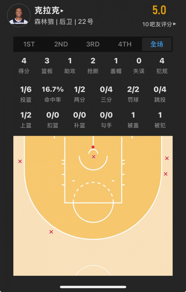 森林狼23年53號(hào)秀 杰倫-克拉克 登場(chǎng)24.1分鐘