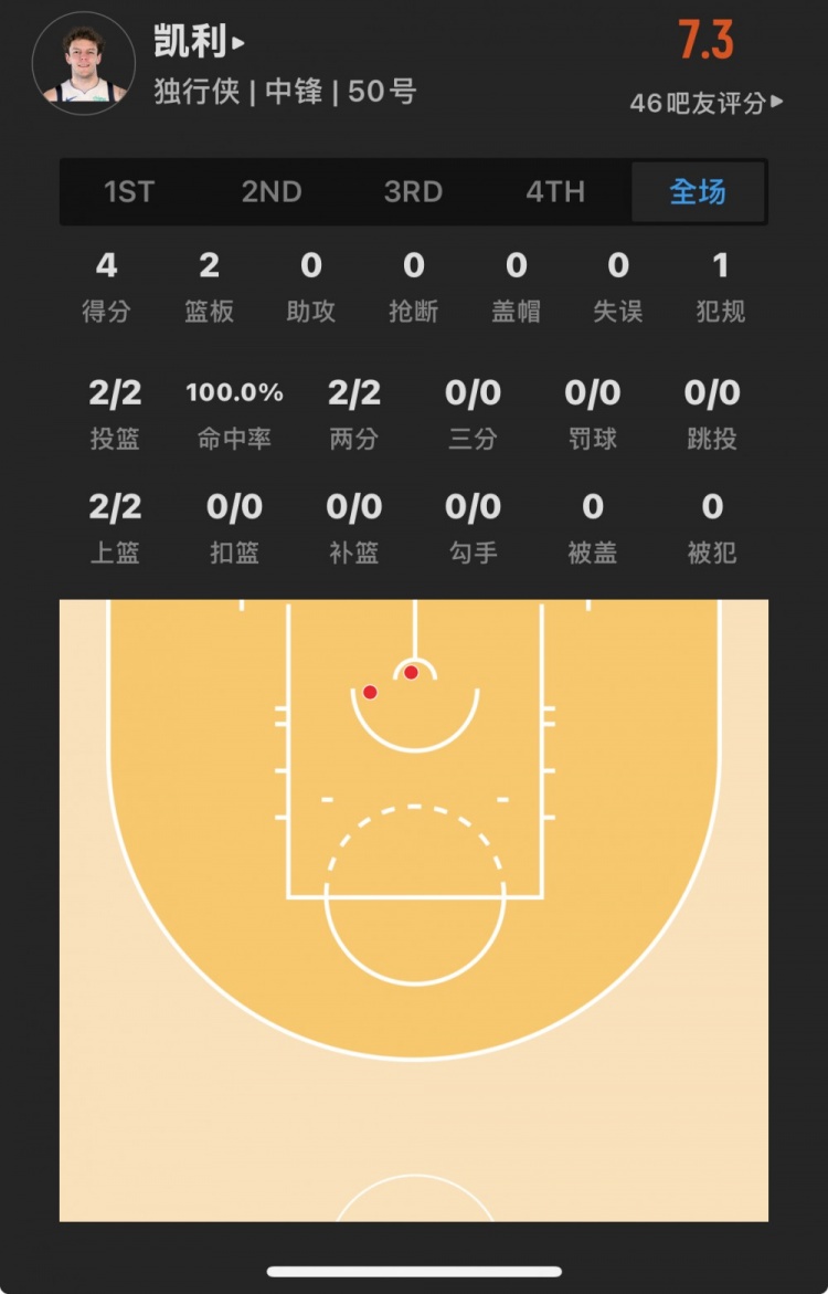 獨(dú)行俠落選秀 凱勒-凱利 登場(chǎng)2.7分鐘