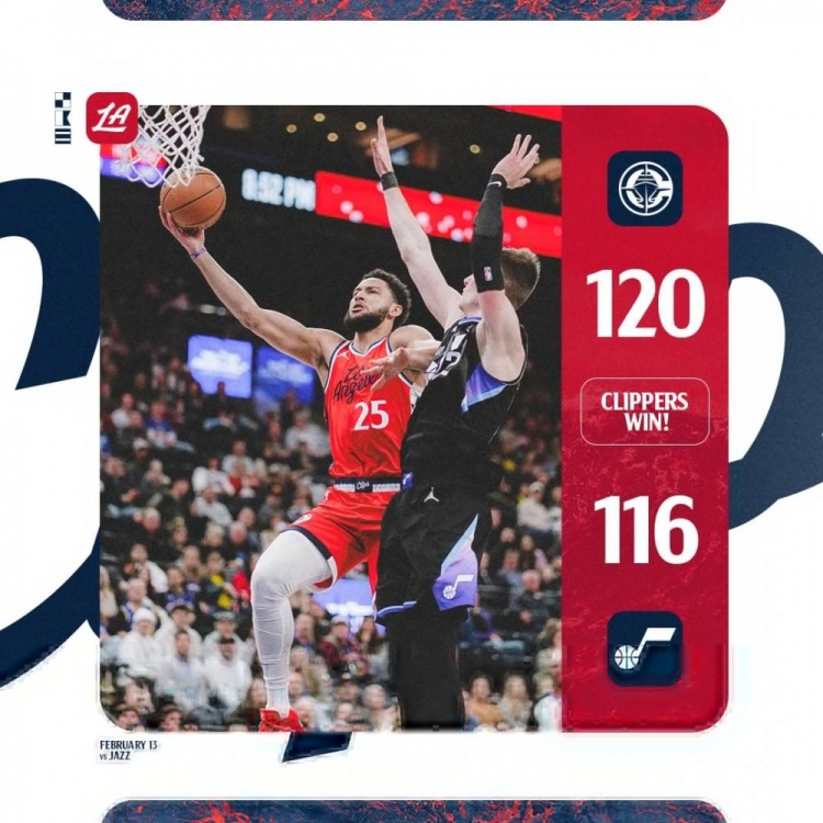 2月14日訊 NBA常規(guī)賽,快船加時120-116險勝爵士。賽后快船官方贏球海報封面人物給到了本-西蒙斯。本場快船首秀,本-西蒙斯替補出戰(zhàn)27分02秒,5投4中,罰球4中4,砍下12分7籃板6助攻3搶斷1蓋帽。 本文標簽: 籃球 NBA 快船 西蒙斯