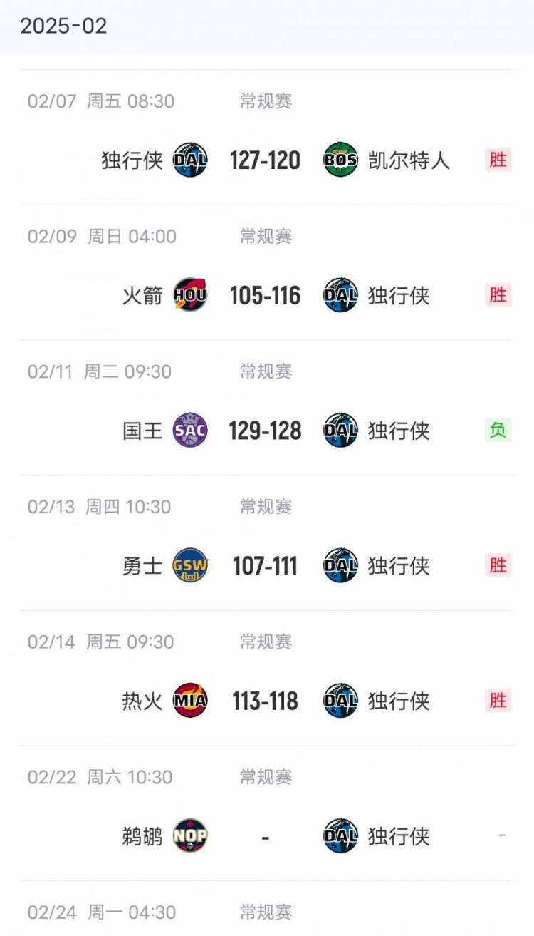 2月14日訊 NBA常規(guī)賽,獨行俠118-113力克熱火。據統(tǒng)計,最近5場比賽,獨行俠取得了4勝1負,唯一輸球是加時不敵國王。目前,獨行俠30勝26負排名西部第八。 本文標簽: NBA 籃球 西部 獨行俠
