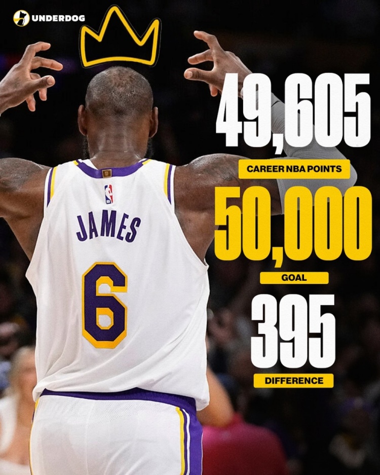 本場比賽結(jié)束后,詹姆斯生涯常規(guī)賽得分達(dá)到41474分,季后賽得分為8162分,生涯總得分為49636分,距離50000分成就還差364分!