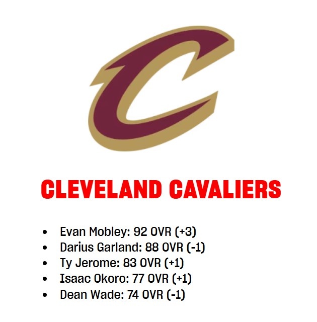 3月7日訊 NBA2K官方更新了各隊球員的能力值,騎士球員變化情況如下: