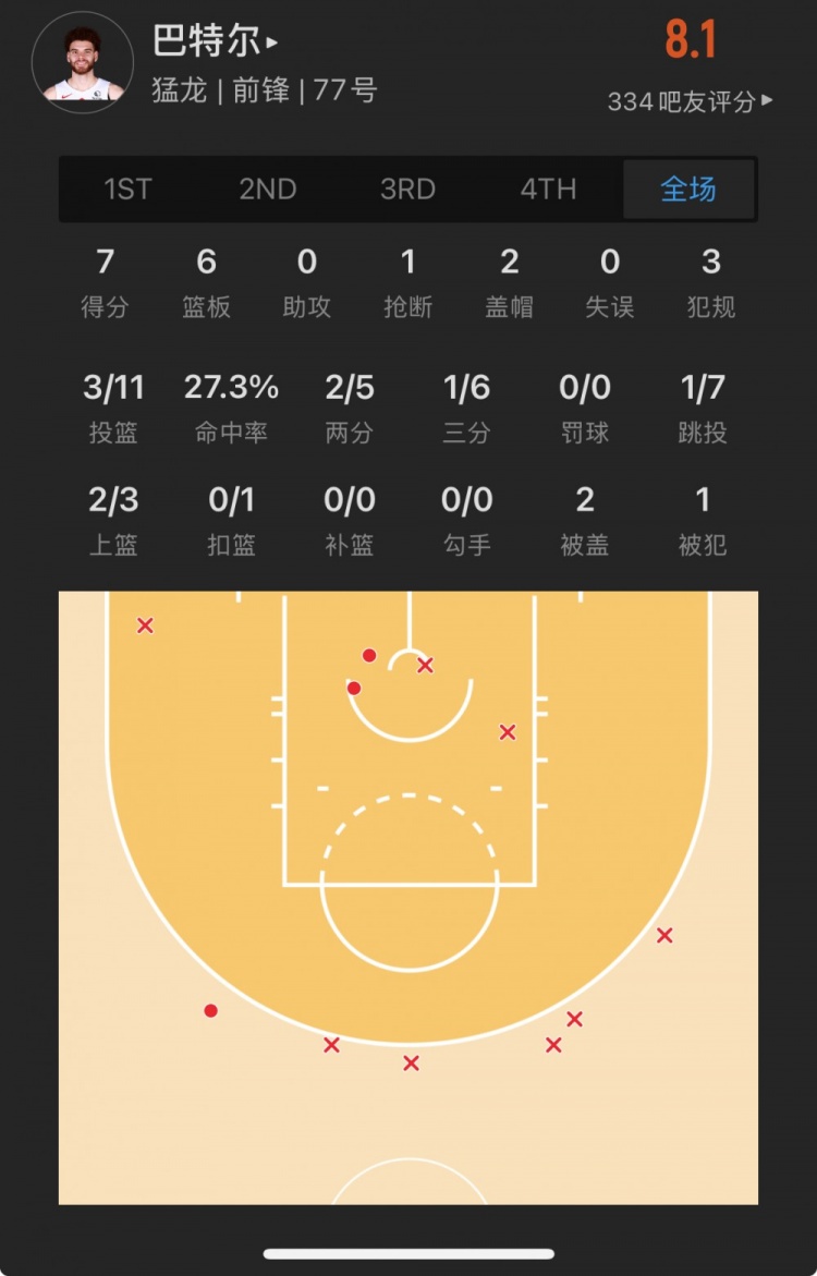 猛龍45號(hào)秀 賈馬爾-謝德 登場(chǎng)26.6分鐘