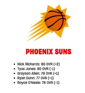 1月31日訊 NBA2K本周更新,太陽隊內球員的能力值有所變化,新援理查茲由78上漲至80。泰厄斯-瓊斯由81降至80,格雷森-阿倫由78升至79,瑞安-鄧恩由76升至77,羅伊斯-奧尼爾由77降至76。 本文標簽: 籃球 NBA 太陽