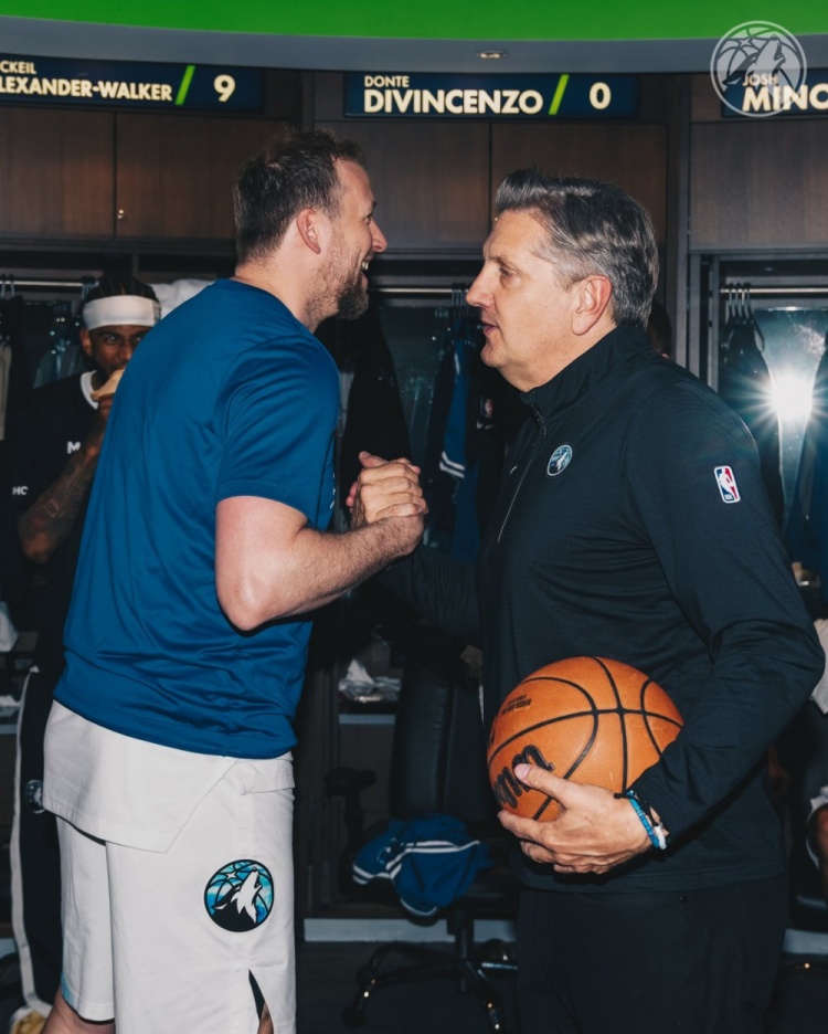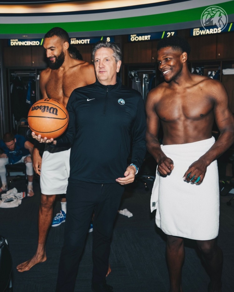 3月17日訊 NBA常規(guī)賽,森林狼今日主場128-102大勝爵士。這是球隊主帥芬奇的生涯第200場勝利。賽后全隊在更衣室為芬奇慶祝,后者也拿到了比賽用球。愛德華茲和戈貝爾更是僅僅裹著一條浴巾就和芬奇合影,老將英格爾斯也擁抱送上祝賀。 本文標簽: 籃球 NBA 森林狼