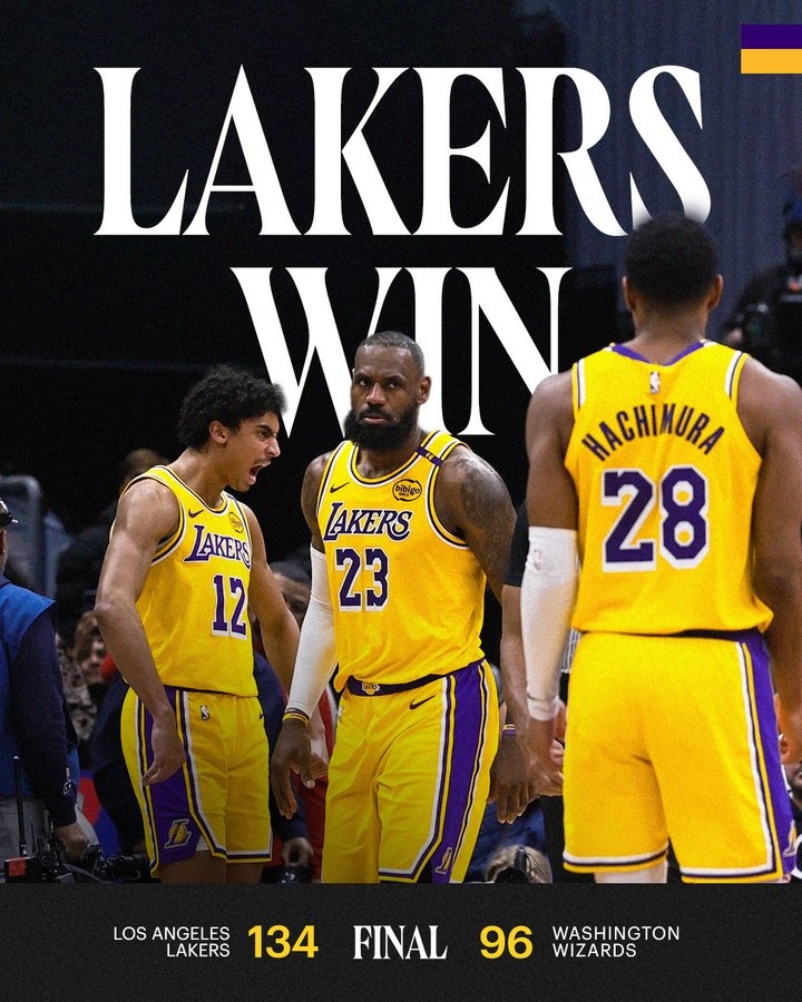 1月31日訊 NBA常規(guī)賽,湖人134-96大勝奇才。