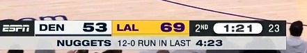 宕機(jī)了!湖人四分半一分沒(méi)得 被掘金打了一個(gè)12-0