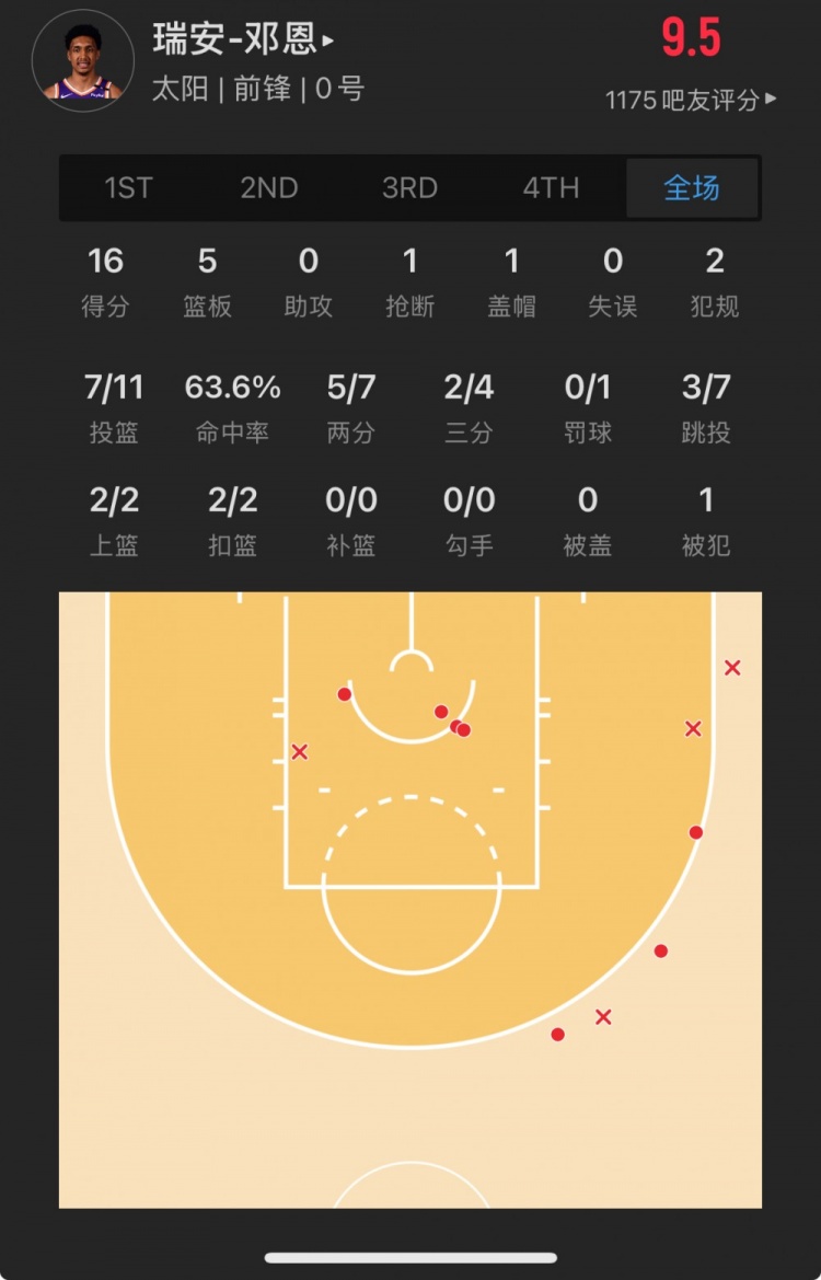 太陽(yáng)28號(hào)秀 瑞安-鄧恩 登場(chǎng)29.5分鐘