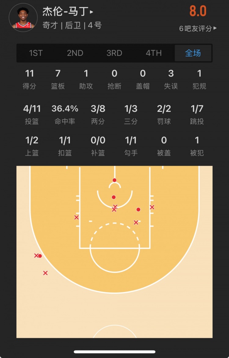 奇才落選秀 杰倫-馬丁 登場(chǎng)31.4分鐘