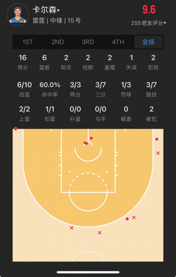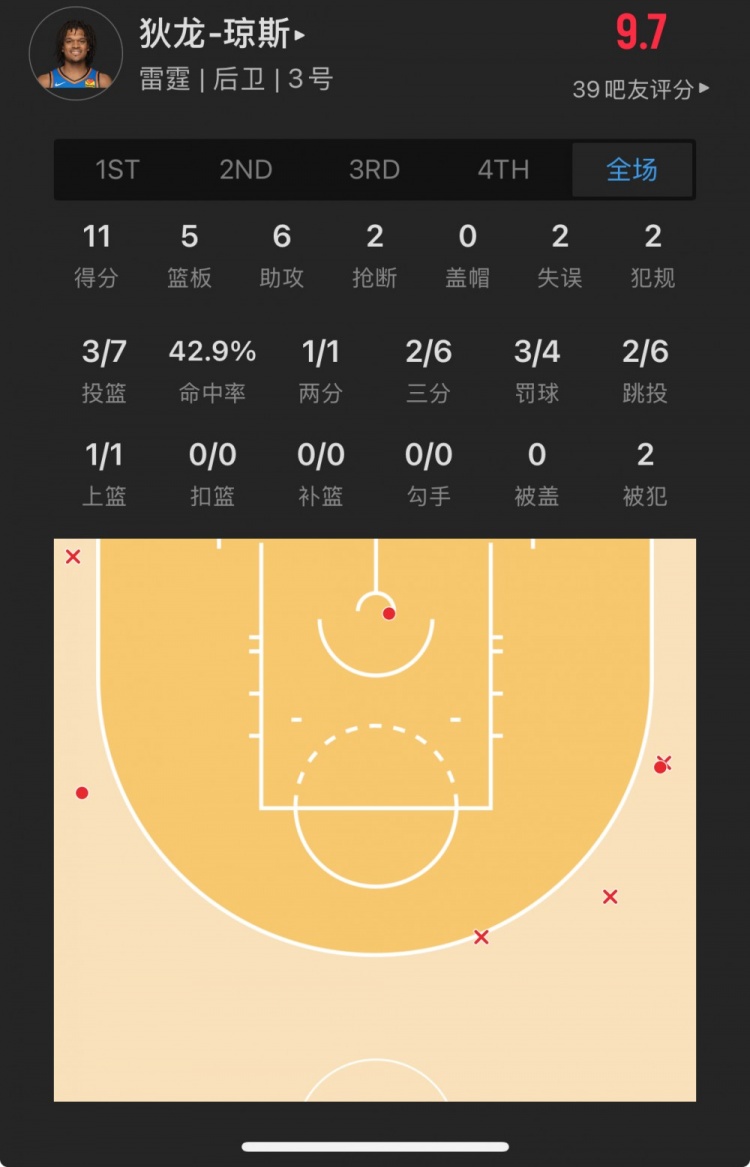 雷霆26號(hào)秀 狄龍-瓊斯 登場(chǎng)36.2分鐘