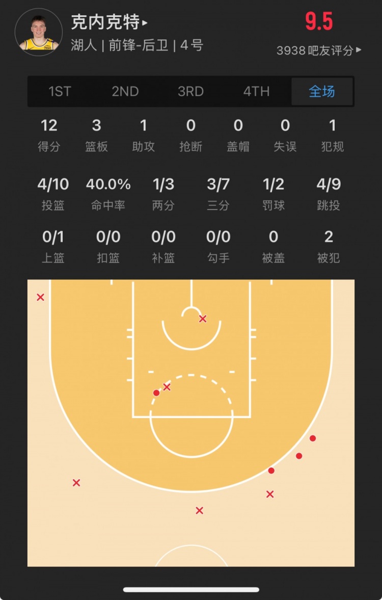 湖人17號(hào)秀 道爾頓-克內(nèi)克特 登場(chǎng)25.2分鐘