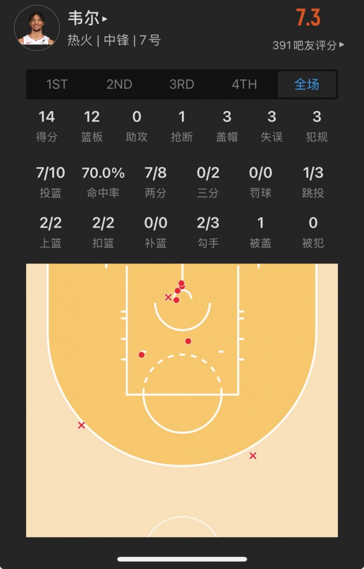 熱火15號(hào)秀 克雷爾-韋爾 登場(chǎng)32.5分鐘