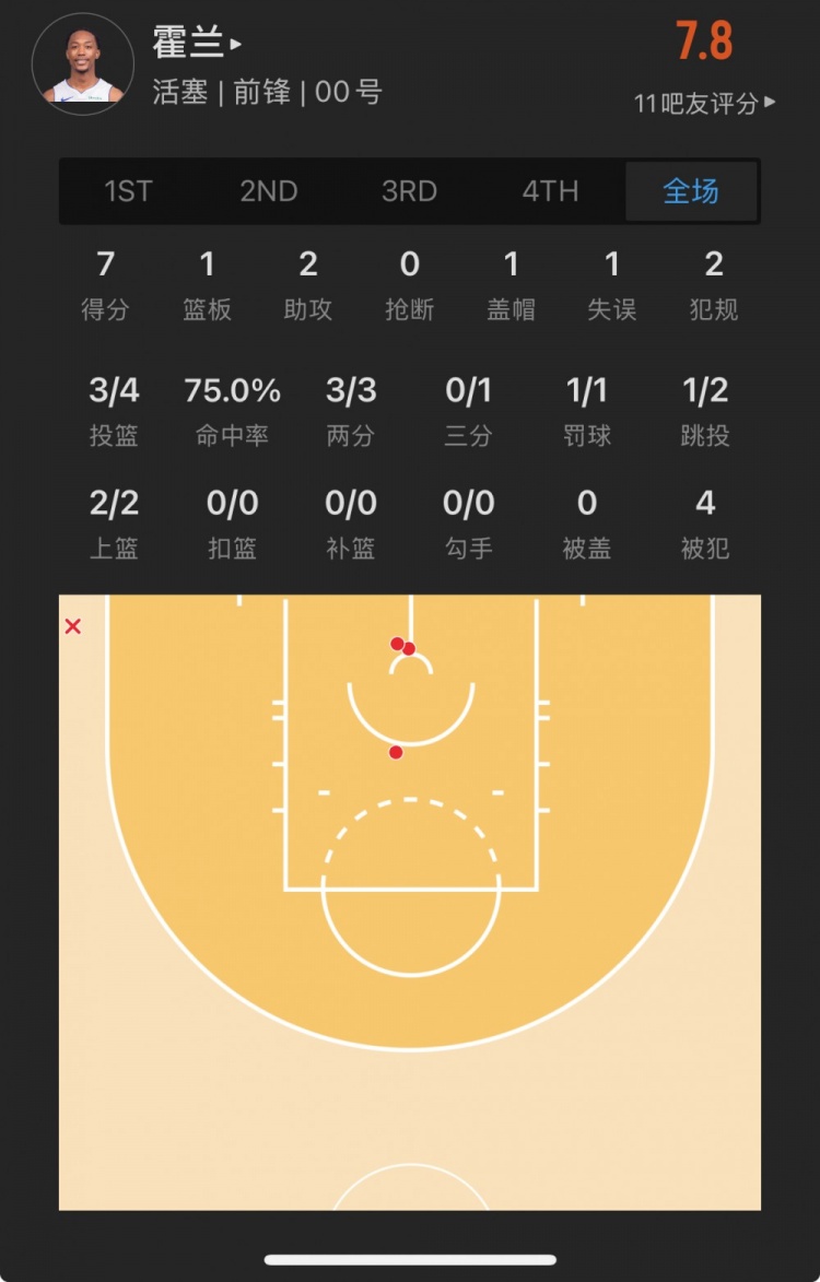 活塞5號(hào)秀 羅恩-霍蘭二世 登場(chǎng)12.4分鐘