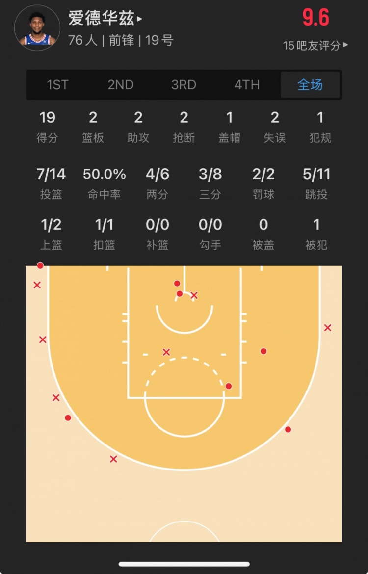 76人落選秀 賈斯汀-愛(ài)德華茲 登場(chǎng)30.4分鐘