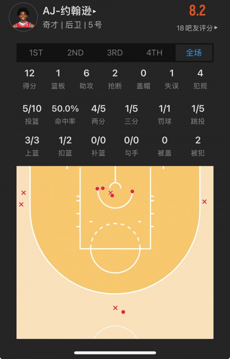 奇才23號(hào)秀 AJ-約翰遜 登場(chǎng)28.4分鐘