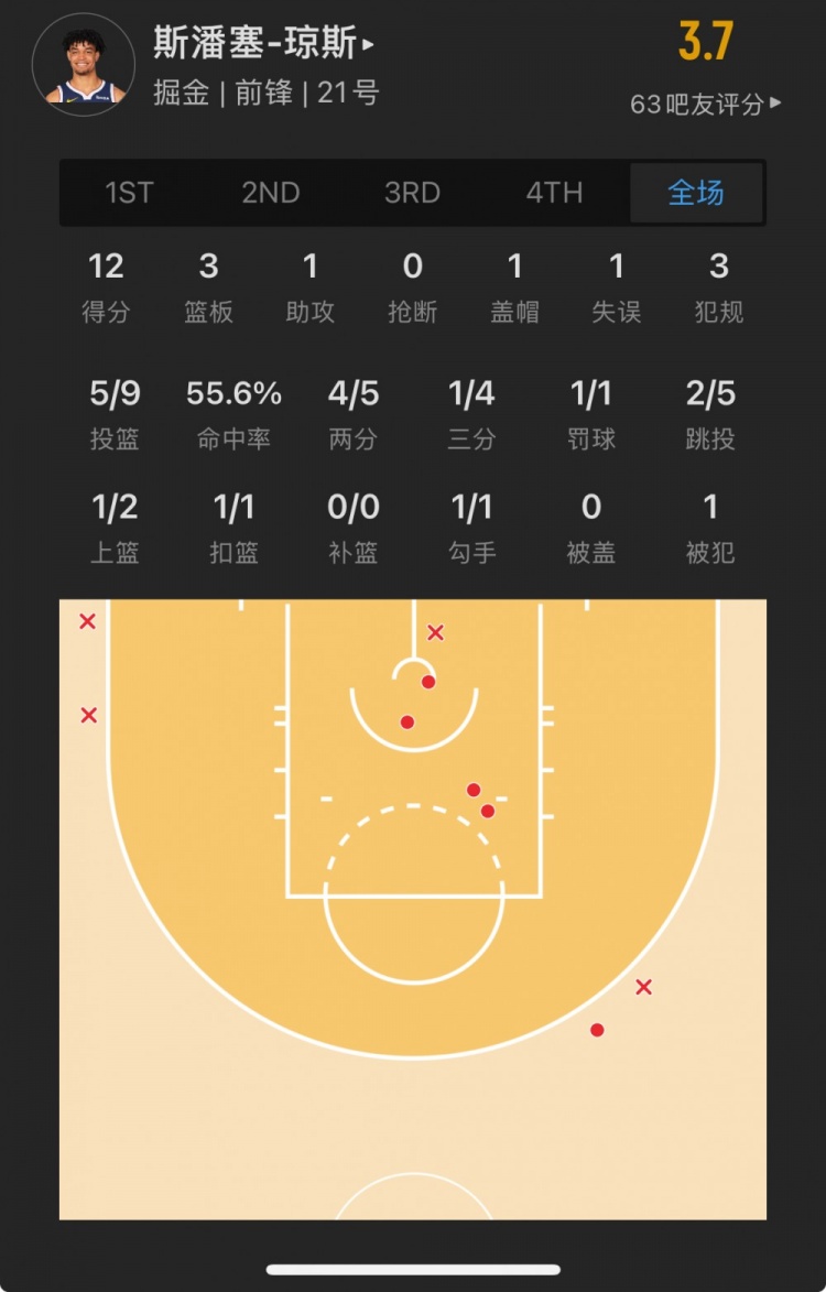 掘金落選秀 斯潘塞-瓊斯 登場(chǎng)29.3分鐘