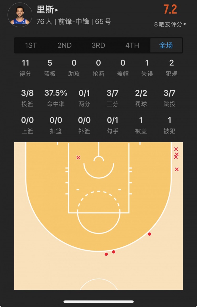 76人落選秀 亞歷克斯-里斯 登場(chǎng)24.2分鐘