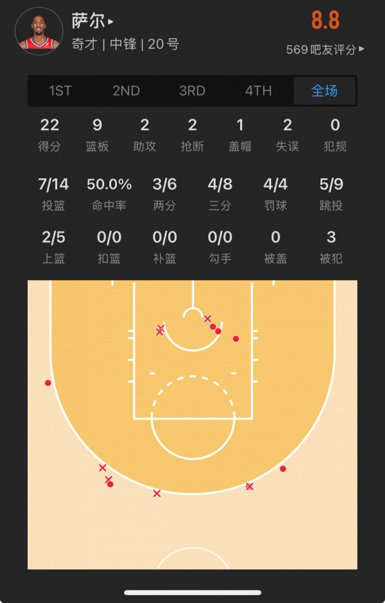 奇才榜眼秀 亞歷克斯-薩爾 登場(chǎng)23.2分鐘