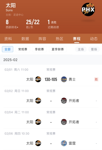 02月01日訊 NBA常規(guī)賽,太陽在客場以130-105大破勇士。