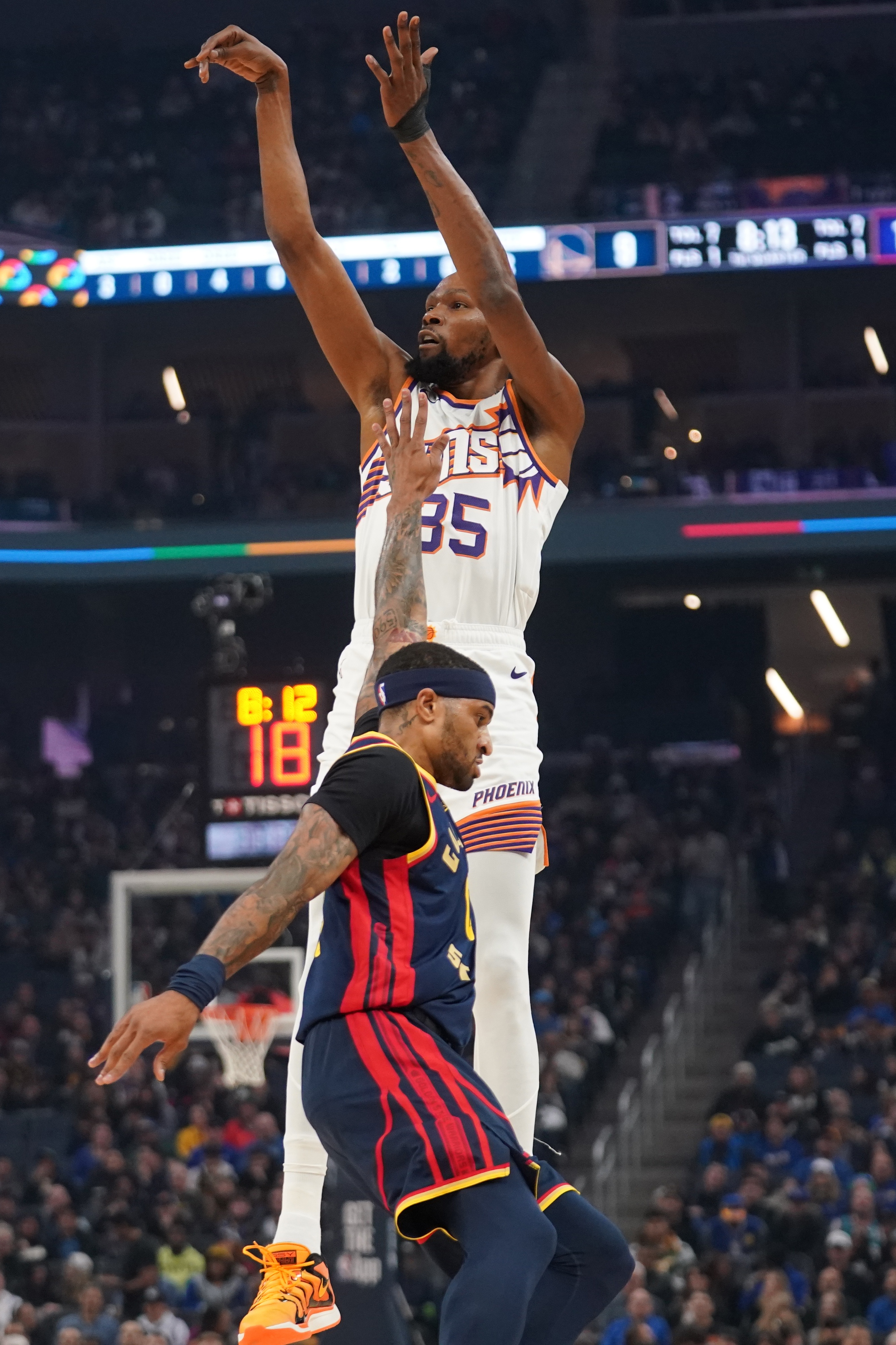此役,太陽球星杜蘭特面對老東家上陣29分21秒13投6中,三分9中5、罰球4中2,得到19分6籃板3助攻1搶斷1蓋帽。