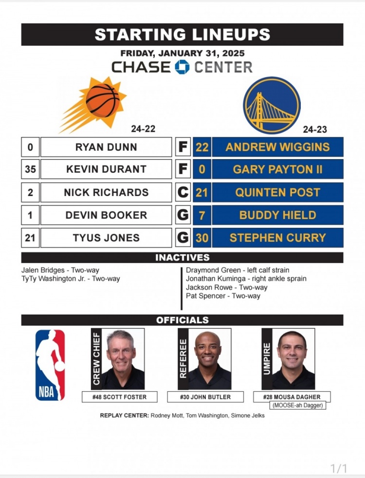 2月1日訊 今天中午11點,勇士將對陣太陽。賽前,雙方公布首發(fā)陣容。勇士:維金斯、小佩頓、波斯特、希爾德、庫里。太陽:鄧恩、杜蘭特、理查茲、布克、瓊斯。主裁判是名哨福斯特。 本文標簽: NBA 籃球 太陽 勇士 杜蘭特 布克 庫里 維金斯