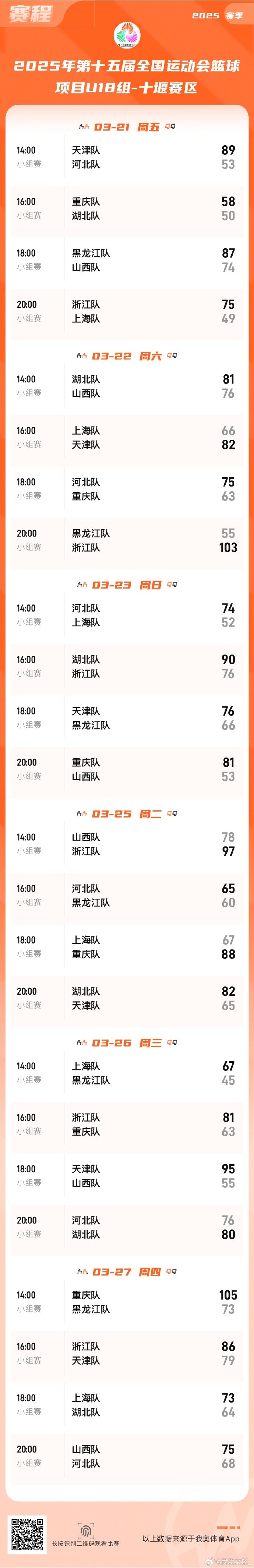 【湖北、重慶、浙江U18女籃挺進(jìn)決賽圈】24場全運(yùn)會U18女籃資格賽昨晚在湖北十堰全部落下帷幕,最終湖北、重慶、浙江U18女籃成功突圍,昂首挺進(jìn)“十五運(yùn)”決賽圈!