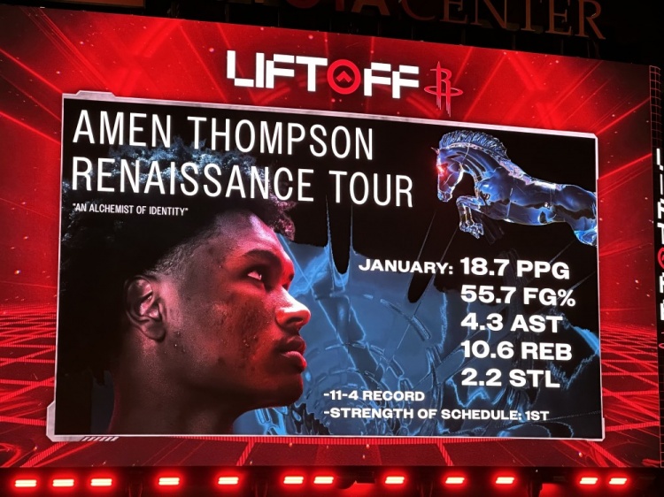 據(jù)統(tǒng)計(jì),火箭新星阿門(mén)-湯普森在1月場(chǎng)均能砍下18.7分10.6籃板4.3助攻2.2搶斷,投籃命中率55.7%。