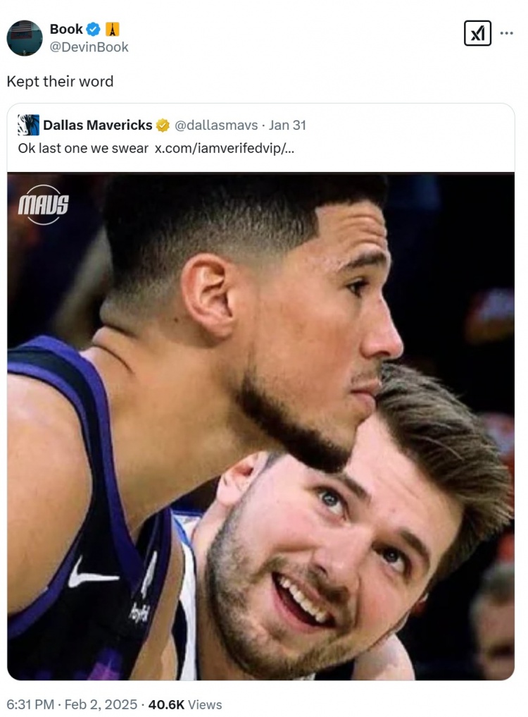 - 獨行俠官方昨天說最后一次用東契奇凝望照!布克回懟:挺遵守諾言