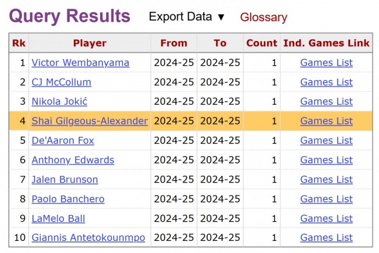 1月30日訊 NBA常規(guī)賽,雷霆109-116不敵勇士,亞歷山大空砍52分。本場(chǎng)比賽,亞歷山大出戰(zhàn)29中16,三分6中2,罰球21中18,拿到52分3籃板4助攻1搶斷。據(jù)統(tǒng)計(jì),亞歷山大是聯(lián)盟本賽季首位多次砍下50+的球員,其他人最多1次。共9人做到過(guò)1次50+,具體如下: 本文標(biāo)簽: 籃球 NBA 雷霆 亞歷山大