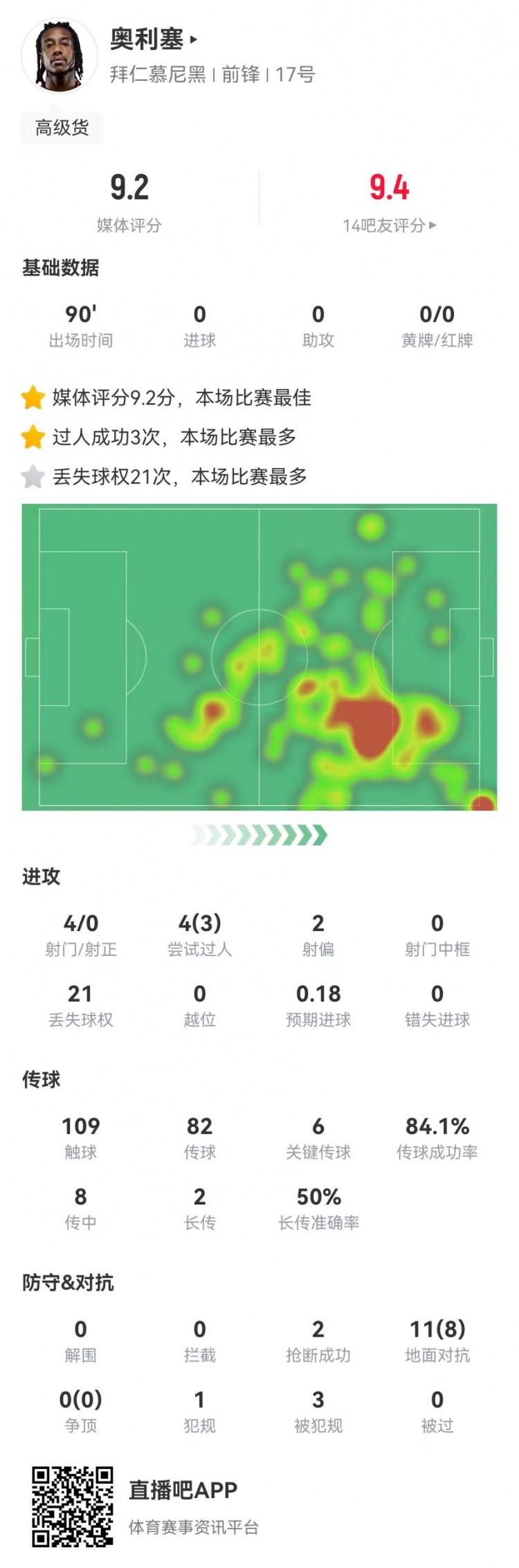 1月30日訊 拜仁在本輪歐冠3-1擊敗布拉迪斯拉發(fā),奧利塞本場數(shù)據(jù)如下:出場90分鐘預(yù)期助攻0.82109觸球82傳球、69成功,成功率84%6關(guān)鍵傳球8傳中、2成功2長傳、1成功2創(chuàng)造重大機會4射門、0射正4過人、3成功11對抗、8成功21丟失球權(quán)3造犯規(guī)2搶斷獲評9.2分全場最高 本文標簽: 歐冠 德甲 拜仁慕尼黑 足球