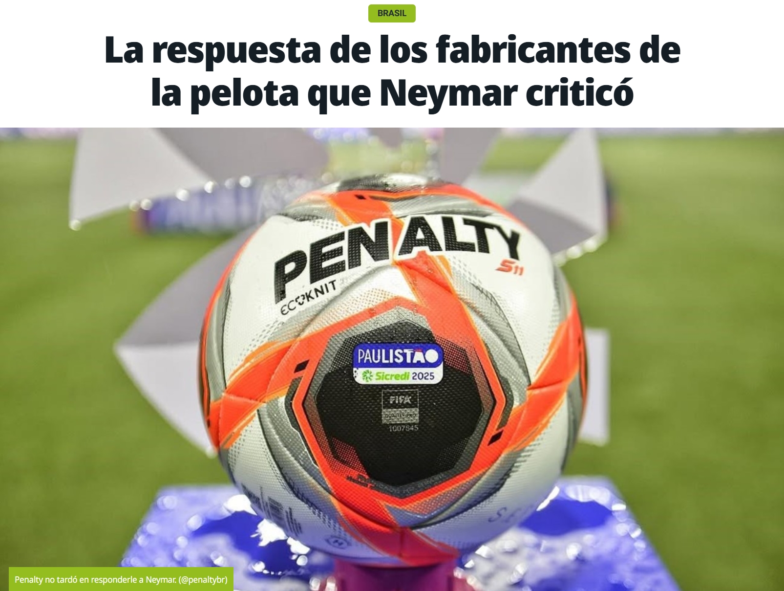 02月15日訊 巴西圣保羅州錦標(biāo)賽用球供應(yīng)商Penalty最近發(fā)布了一則聲明,針對內(nèi)馬爾對比賽用球的批評做出回應(yīng)。
