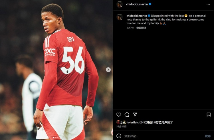2月17日訊 英超本輪焦點(diǎn)戰(zhàn)中,曼聯(lián)0-1不敵熱刺。比賽尾聲階段,小將奧比-馬丁替補(bǔ)登場(chǎng)。賽后,他更新了社媒紀(jì)念自己的曼聯(lián)一線隊(duì)首秀。