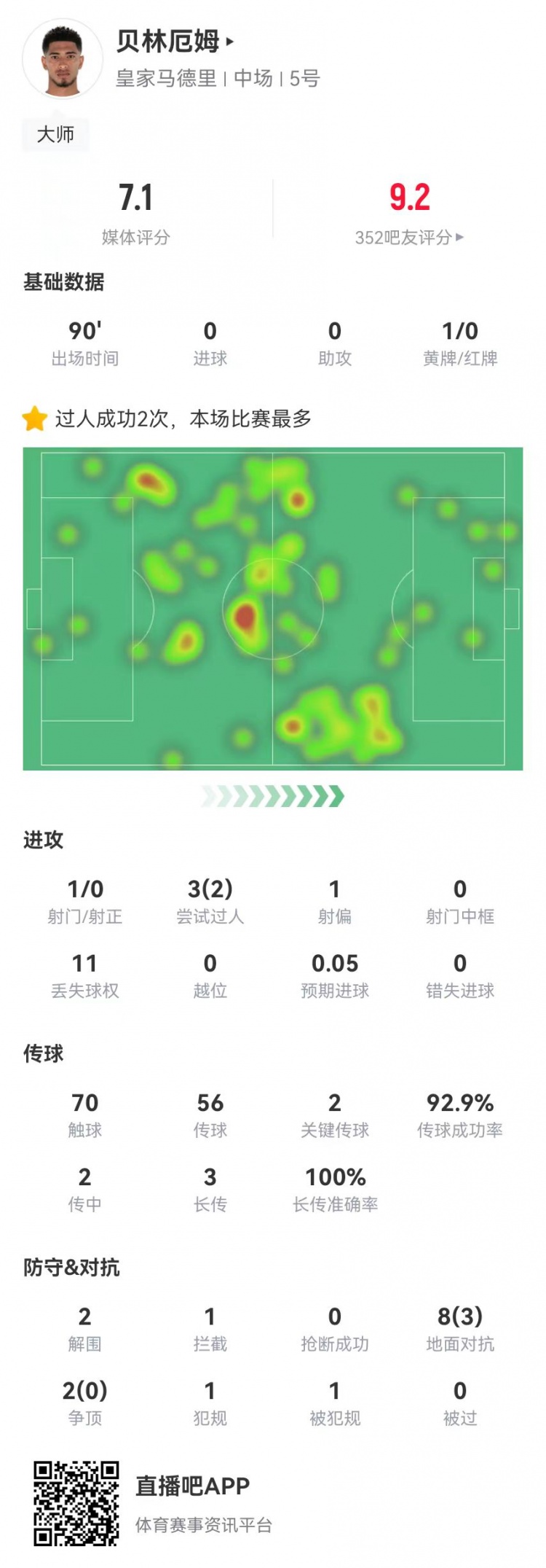 2月20日訊 皇馬在本輪歐冠次回合3-1擊敗曼城,貝林厄姆本場數(shù)據(jù)如下:首發(fā)踢滿全場預期助攻0.2170觸球56傳球、52成功,成功率93%2關鍵傳球2傳中、0成功3長傳、3成功1射門、0射正3過人、2成功10對抗、3成功11丟失球權1犯規(guī)1造犯規(guī)2解圍1攔截獲評7.1分 本文標簽: 足球 西甲 皇家馬德里 英超 曼城 歐冠