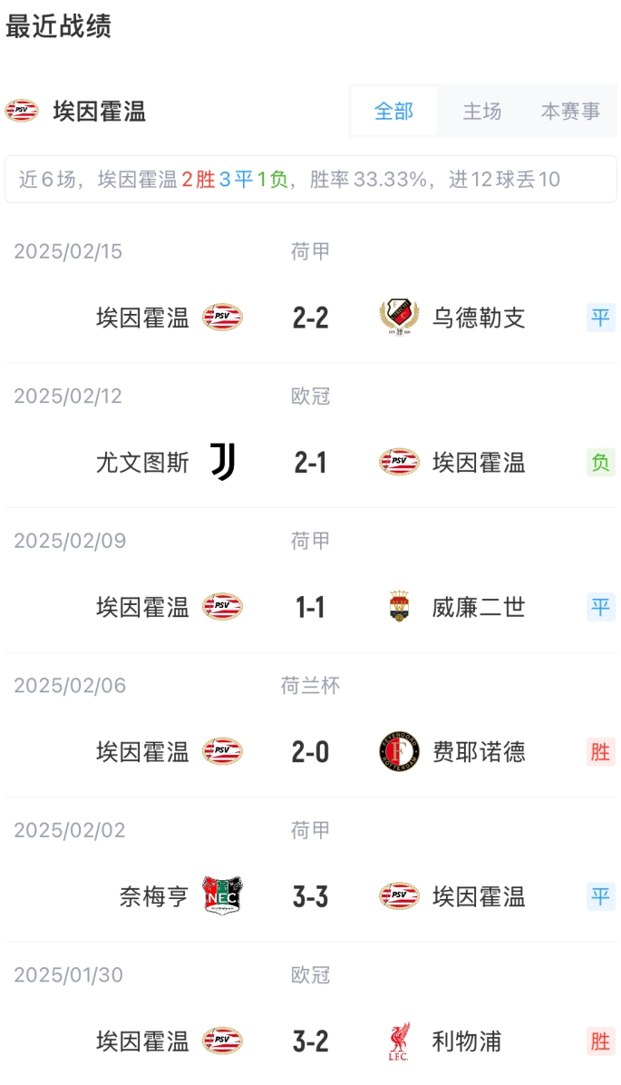 2月20日訊 歐冠淘汰賽附加賽次回合,埃因霍溫主場(chǎng)迎戰(zhàn)尤文比賽即將打響,賽前首發(fā)出爐。首回合對(duì)陣,尤文2-1埃因霍溫。