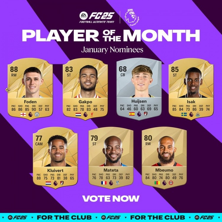 1月30日訊 英超官方公布了1月最佳球員候選7人名單,狀態(tài)出色的福登和加克波領銜。