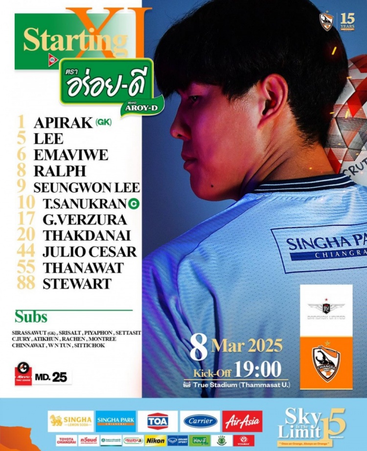 3月8日訊 泰超第25輪比賽,清萊聯(lián)將在客場對(duì)陣曼谷聯(lián),中國球員郭田雨并未進(jìn)入比賽名單。