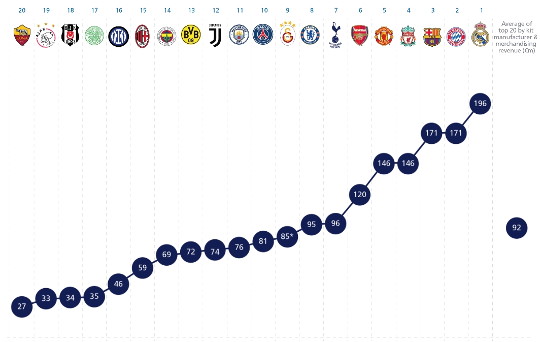 03月08日訊 根據(jù)歐足聯(lián)最新的財務(wù)報告顯示,皇馬去年以1.96億歐創(chuàng)下了球衣和商品銷售收入的新世界紀錄。